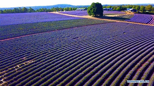 Photo taken on Jan. 21, 2019 shows lavender blossoms at Bridestowe Lavender Estate in Tasmania state, Australia. (Xinhua/Pan Xiangyue)