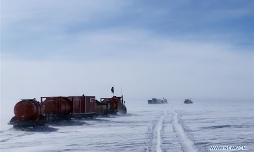 Vehicles of China's 35th Antarctic expedition are on their way to Zhongshan station in Antarctica on Feb. 5, 2019, the first day of the Chinese Lunar New Year. (Xinhua/Liu Shiping)