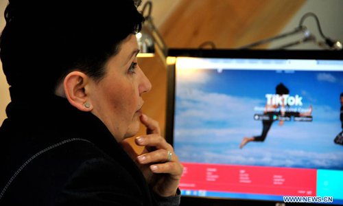 Barbara Giza, head of Faculty of Journalism at SWPS University of Social Sciences and Humanities, browses the TikTok web page in her office in Warsaw, Poland, on Feb. 13, 2019. (Xinhua/Shi Zhongyu)