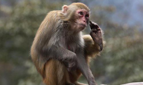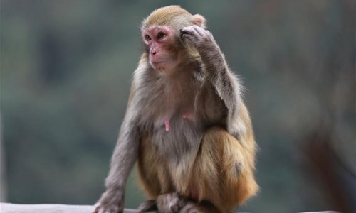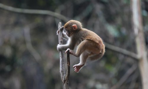 A macaque is seen at Wulingyuan National Park in Zhangjiajie, central China's Hunan Province, on Feb. 24, 2019. The early spring brought warm weather to the national park and lively macaques drew a lot of tourists' attention. (Xinhua/Wu Yongbing)