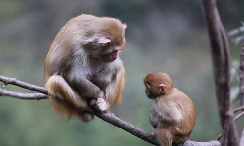 Macaques are seen at Wulingyuan National Park in Zhangjiajie, central China's Hunan Province, on Feb. 24, 2019. The early spring brought warm weather to the national park and lively macaques drew a lot of tourists' attention. (Xinhua/Wu Yongbing)