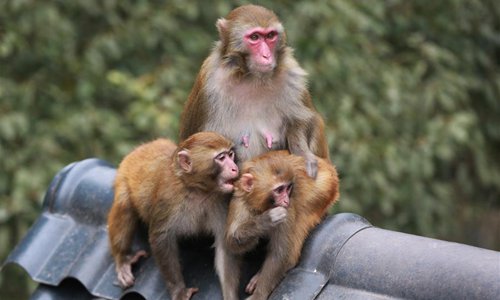 Macaques play on a roof at Wulingyuan National Park in Zhangjiajie, central China's Hunan Province, on Feb. 24, 2019. The early spring brought warm weather to the national park and lively macaques drew a lot of tourists' attention. (Xinhua/Wu Yongbing)