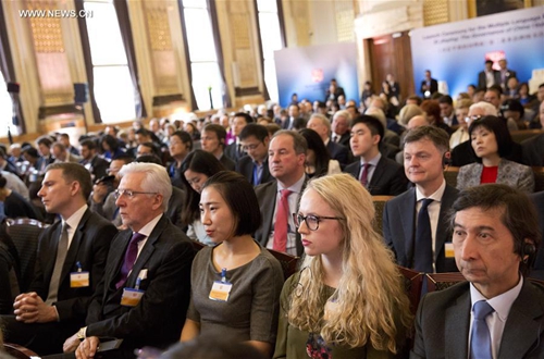 Guests listen to speeches during the launch ceremony for the multilingual versions of the second volume of "Xi Jinping: The Governance of China" in London, Britain, April 11, 2018. (Xinhua/Isabel Infantes)