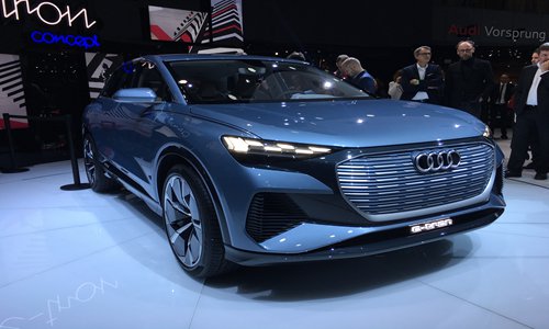 Inset: Audi Q4 e-tron shown on the Geneva International Motor Show on Tuesday.Photo: Tu Lei/GT