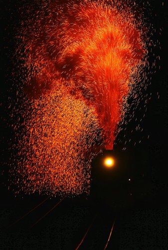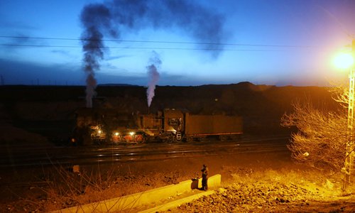 Sparks fly from a running steam locomotive in Sandaoling, Hami Prefecture in Northwest China's Xinjiang Uyghur Autonomous Region Photo: Cui Meng/GT