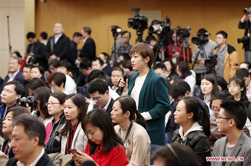 A journalist asks questions at a press conference on "strengthening market regulation and maintaining market order" for the second session of the 13th National People's Congress (NPC) in Beijing, capital of China, March 11, 2019. (Photo:Xinhua)