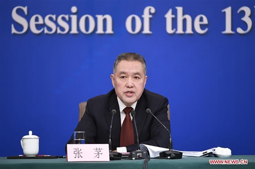 Zhang Mao, chief of the State Administration for Market Regulation, attends a press conference on "strengthening market regulation and maintaining market order" for the second session of the 13th National People's Congress (NPC) in Beijing, capital of China, March 11, 2019. (Photo:Xinhua)