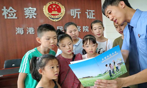 A procurator is teaching children legal knowledge about prevention of juvenile delinquency in Haigang district, Qinhuangdao, North China's Hebei Province on August 7, 2018. Photo: IC