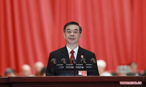 Chief Justice Zhou Qiang delivers a work report of the Supreme People's Court (SPC) at the third plenary meeting of the second session of the 13th National People's Congress (NPC) at the Great Hall of the People in Beijing, capital of China, March 12, 2019. (Photo:Xinhua)