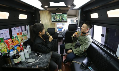 A Karaoke van can be ordered to your door in Chengdu, Southwest China's Sichuan Province. Along with a sing-along stereo system the van is equipped with a microwave, a mini fridge, a toilet and even a bottle of Ballantine's Whiskey. Photo: IC