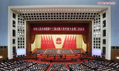 Deputies to the 13th National People's Congress (NPC) press buttons to vote at the closing meeting of the second session of the 13th NPC at the Great Hall of the People in Beijing, capital of China, March 15, 2019. (Photo:Xinhua)