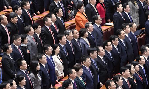 Deputies to the 13th National People's Congress (NPC) sing the national anthem at the closing meeting of the second session of the 13th NPC at the Great Hall of the People in Beijing, capital of China, March 15, 2019.(Photo:Xinhua)