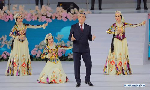 Artists perform in celebration of the Navruz festival in Tashkent, Uzbekistan, on March 21, 2019. (Photo:Xinhua)
