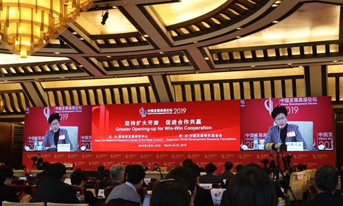 Carrie Lam Cheng Yuet-ngor, chief executive of the Hong Kong Special Administrative Region, speaks at a session at the annual China Development Forum in Beijing on Monday. Photo: Li Qiaoyi/GT