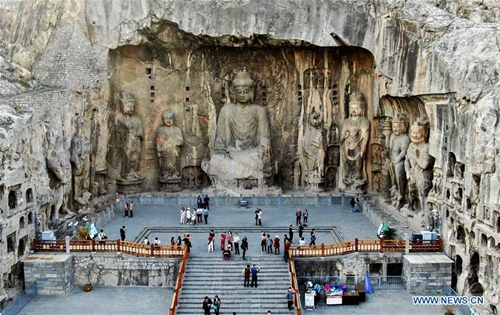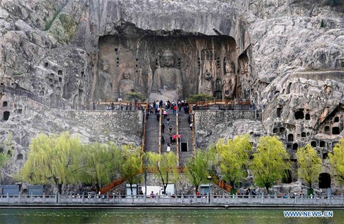 People visit the Longmen Grottoes scenic area in Luoyang, central China's Henan Province, on March 26, 2019. (Photo:Xinhua)