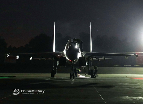 A Su-30 fighter jet attached to an aviation brigade of the air force under the PLA Southern Theater Command waits approval to take off at a military airfield during a night combat sortie on March 20, 2019. (Photo:eng.chinamil.com.cn)