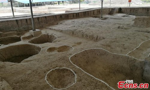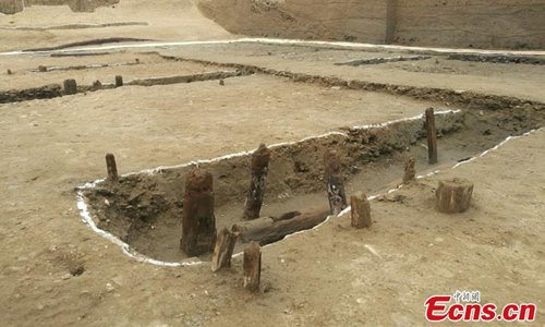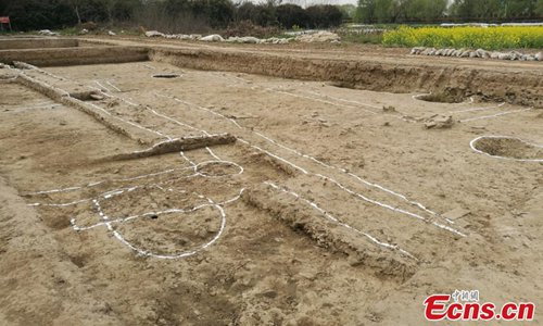A view of an excavation at the Huangsipu ruins in Yangshe Town, Zhangjiagang City, Jiangsu Province, April 2, 2019. Archaeologists have agreed the ruins are where Jianzhen, a Buddhist monk in the Tang Dynasty (618-907), set off to visit Japan in his sixth, and also final, attempt to do so. Nanjing Museum has organized six excavations at the site since 2008, discovering remains of a bridge, a house and a well dating back to the Tang and Song dynasties. Huangsipu is considered to have been an important port on the lower reaches of the Yangtze River. (Photo: China News Service)