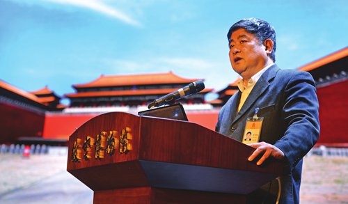Shan Jixiang gives a speech in the Palace Museum in Beijing on February 12, 2017. Photo: VCG