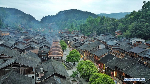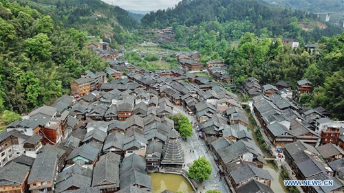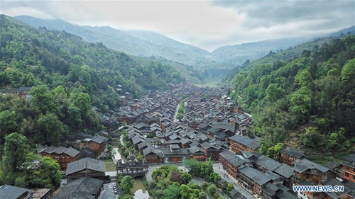 Aerial photo taken on April 14, 2019 shows the Dong village of Zhaoxing, Liping County, southwest China's Guizhou Province. (Photo:Xinhua)