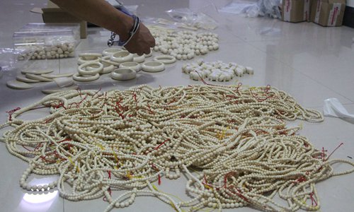 Confiscated ivory products are put on display in South China's Guangxi Zhuang Autonomous Region. Photo: VCG