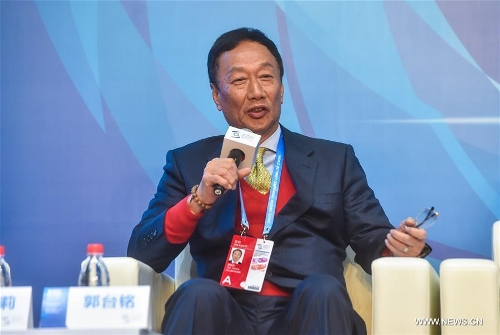 Terry Gou, founder of Foxconn Technology Group, speaks during the Cross-Strait and Hong Kong, Macao Internet Development Forum of 2015 World Internet Conference in Wuzhen, east China's Zhejiang Province. Photo: Xinhua