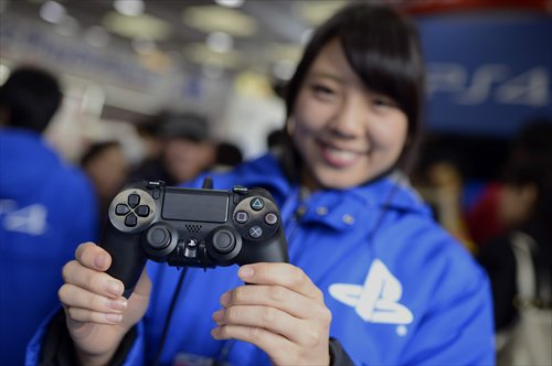 A staff member shows off a Sony PlayStation 4 console at an electronic product store in Tokyo, Japan on February 22 2014. Photo: CFP