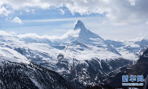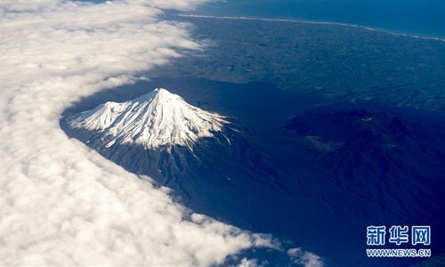 Aerial photo taken on June 8, 2018 shows the snow-covered Mount Taranaki in New Zealand.