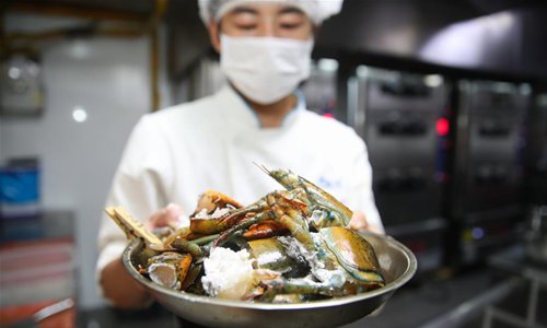 A chef shows American lobsters at one of the Freshhema supermarkets in Shanghai, east China, Aug. 8, 2018. It takes 36 hours at the earliest for the fresh lobsters from an aquafarm in Canada to be served on the dining tables of citizens in Shanghai after going through processes of transporting, inspecting, weighing, and selecting. Food of a particular place is an important symbol of local geographic and cultural characteristics. Food carries history and tradition, leads the tide of trade, strengthens diplomatic relations, disseminates and promotes culture. Food has been serving as connections between people around the world. In ancient times, food such as grapes, pomegranates, walnuts, coriander, cucumbers and sesame seeds were introduced to China along the Silk Road. Nowadays, thanks to the Belt and Road Initiative, red wine, coffee, dried fruits, meat, seafood, and dairy products from foreign countries enter the homes of ordinary people, turning daily meals into feasts with exotic cuisines. (Photo: Xinhua)