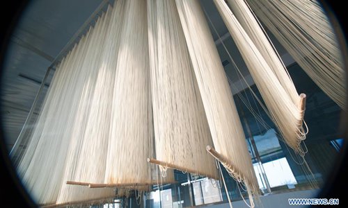 Gongmian noodles are seen processed for air drying at a workshop in Gengjiazhuang Village of Gaocheng District in Shijiazhuang, capital of north China's Hebei Province, July 13, 2016. The Gongmian noodles produced in Gaocheng used to be a tribute to the royal family in ancient times. Through special processes, each noodle is uniformly thin and hollow. Listed as provincial intangible cultural heritage of Hebei in 2013, Gongmian noodles are popular on local and foreign markets. Food of a particular place is an important symbol of local geographic and cultural characteristics. Food carries history and tradition, leads the tide of trade, strengthens diplomatic relations, disseminates and promotes culture. Food has been serving as connections between people around the world. In ancient times, food such as grapes, pomegranates, walnuts, coriander, cucumbers and sesame seeds were introduced to China along the Silk Road. Nowadays, thanks to the Belt and Road Initiative, red wine, coffee, dried fruits, meat, seafood, and dairy products from foreign countries enter the homes of ordinary people, turning daily meals into feasts with exotic cuisines. (Photo: Xinhua)