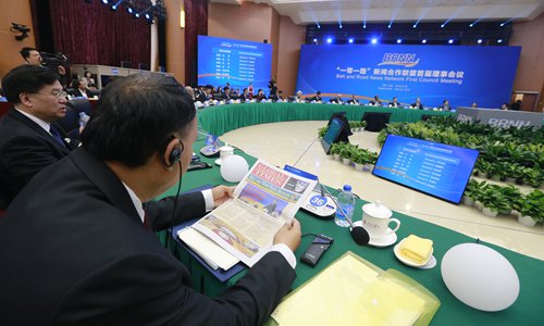 Members from council media outlets of the Belt and Road News Network (BRNN) attend a round-table meeting in Beijing on Tuesday. The BRNN council includes 40 influential media organizations from 25 countries. Photo: Li Hao/GT
