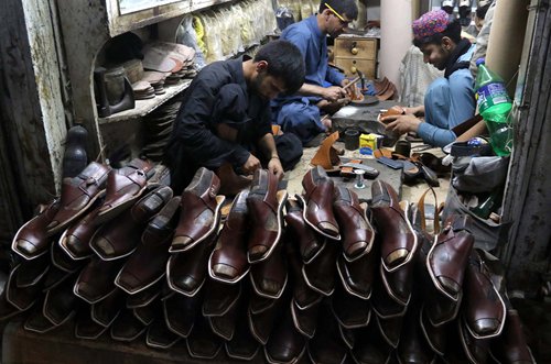 Workers make Peshawari chappal in Jehangirpura, Pakistan, on June 19, 2017. Photos: IC