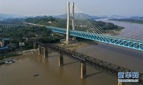 After serving for 59 years, Baishatuo Yangtze River Bridge retired after the last passenger trains crossed the bridge in Southwest China's Chongqing on April 23, 2019. As the first Yangtze River bridge in Chongqing, the bridge will be replaced by a new bridge, which is 100 meters away from it as of April 24. Photo: news.cn