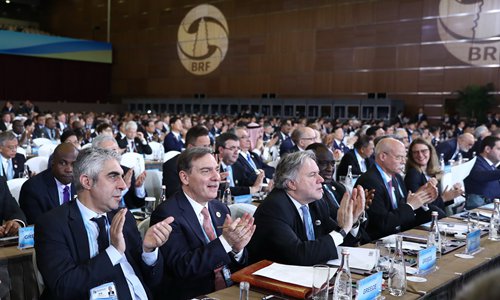 Delegates from different countries attend the opening ceremony of the Second Belt and Road Forum for International Cooperation on Friday in Beijing. Photo: Xinhua