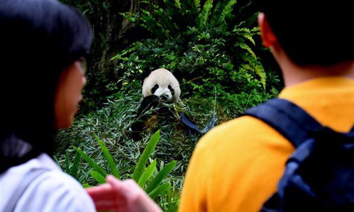 Tourists view the giant panda at the Taipei Zoo in Taipei, southeast China's Taiwan, May 6, 2019. At the Taipei Zoo, the two giant pandas Tuantuan (male) and Yuanyuan (female) have drawn large crowds eager to catch a glimpse of the chubby bears through the past ten years. The two giant pandas were sent to Taiwan from the Chinese mainland in late 2008. In 2013, Tuantuan and Yuanyuan had a baby called Yuanzai. (Photo: Xinhua)