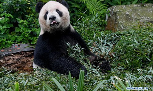 The giant panda Tuantuan eats bamboo leaves at the Taipei Zoo in Taipei, southeast China's Taiwan, May 6, 2019. At the Taipei Zoo, the two giant pandas Tuantuan (male) and Yuanyuan (female) have drawn large crowds eager to catch a glimpse of the chubby bears through the past ten years. The two giant pandas were sent to Taiwan from the Chinese mainland in late 2008. In 2013, Tuantuan and Yuanyuan had a baby called Yuanzai. (Photo: Xinhua)