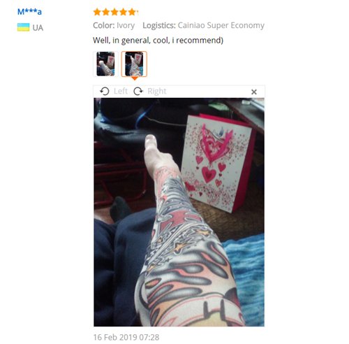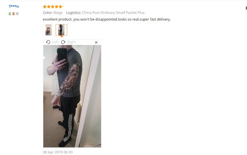 A buyer shows off its tattoo sleeve. Photo: Screenshot of AliExpress