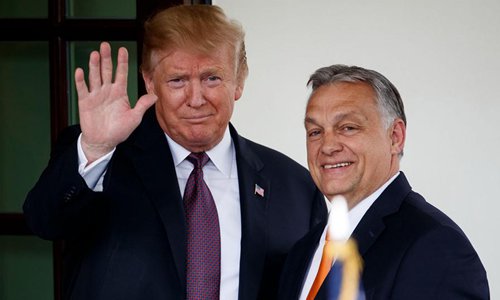 US President Donald Trump (L) welcomes Hungarian Prime Minister Viktor Orban at the White House in Washington D.C., the United States, on May 13, 2019. (Photo: Xinhua)