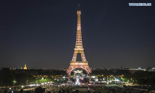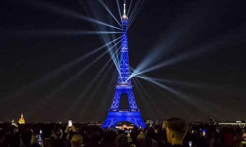 A light show is performed on the Eiffel Tower to celebrate its 130th anniversary in Paris, France, May 15, 2019. Built in Paris for then world's fair, the Eiffel Tower has become the pride and symbol of France. (Photo: Xinhua)