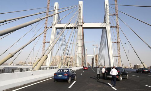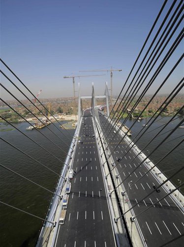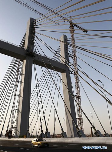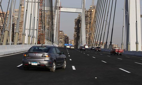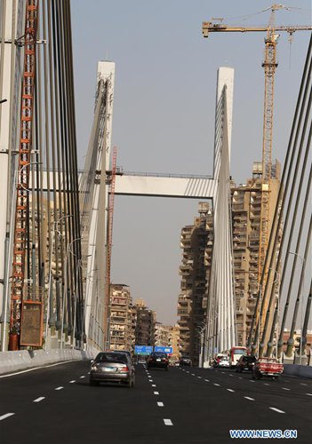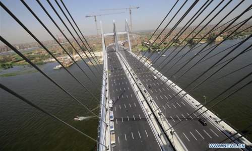 Vehicles are seen on Rod al-Farag Axis Bridge in Cairo, Egypt, on May 15, 2019. Egyptian President Abdel Fattah al-Sisi attended on Wednesday the opening of Rod al-Farag Axis Bridge, the widest suspension bridge in the world, state-run Nile TV reported. (Photo: Xinhua)