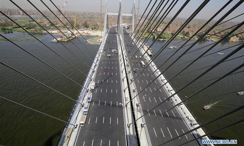 The photo taken on May 15, 2019 shows Rod al-Farag Axis Bridge in Cairo, Egypt. Egyptian President Abdel Fattah al-Sisi attended on Wednesday the opening of Rod al-Farag Axis Bridge, the widest suspension bridge in the world, state-run Nile TV reported. (Photo: Xinhua)
