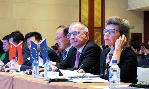 Nicolas Chapuis, the EU Ambassador to China (second from right) and Megan Richards, director, Directorate-General for Energy, European Commission (first from right) attend the event. Photo: Yin Yeping/GT