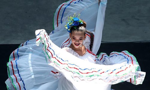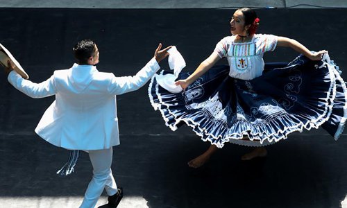 Dancers perform on an international dancing festival in Lima, Peru, on May 20, 2019. The festival is held from May 17 to 20. (Xinhua)