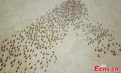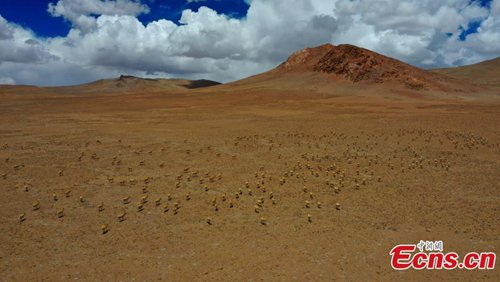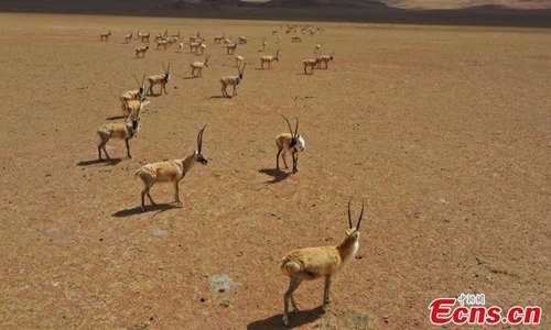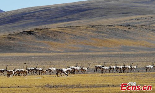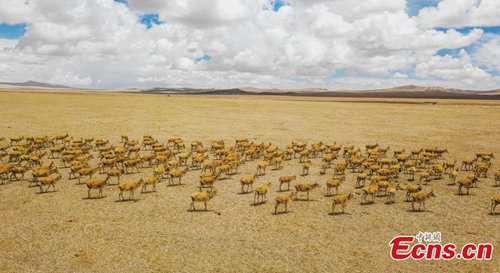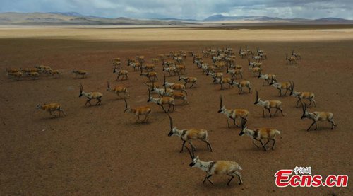 Approximately 3,000 Tibetan antelope form a spectacular scene as they migrate in Gerze County, Ngari Prefecture, Southwest China’s Tibet Autonomous Region. (Photo: China News Service)