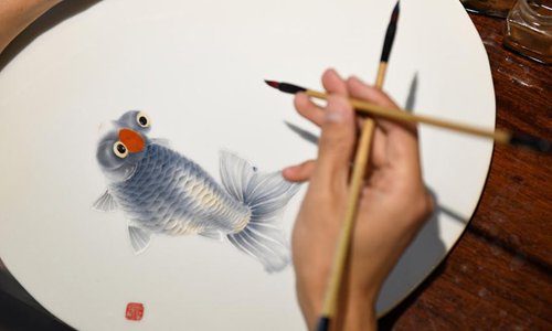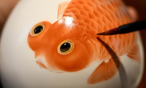Ceramic painter Yang Yuhui paints in a studio in Shijiazhuang City, north China's Hebei province, May 27, 2019. (Xinhua/Xu Jianyuan)
