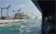 Sailors assigned to a destroyer flotilla with the navy under the PLA Southern Theater Command heave the mooring line aboard the guided-missile destroyer Shenzhen during an astern replenishment-at-sea with another vessel during a round-the-clock maritime training exercise on such subjects as live-fire operation, alongside replenishment-at-sea, ship maneuvering and so forth, in waters off the South China Sea in late May, 2019. (Photo: eng.chinamil.com.cn)