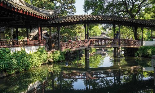 Photo taken on May 7, 2019 shows the scenery of Xiaofeihong (or Little Flying Rainbow) at Humble Administrator's Garden in Suzhou, east China's Jiangsu province. In 1997, the classical gardens of Suzhou were put on the UNESCO's heritage list. In 2018, the total number of gardens included in the "Suzhou Garden List" reached 108, and Suzhou was officially transformed from "the City of Gardens" into "the City of 100 Gardens". (Photo: Xinhua)
