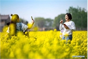 Tourists take pictures amid cole flowers in Beitou Village of Taiyuan, capital of north China's Shanxi Province, June 7, 2019. Photo:Xinhua