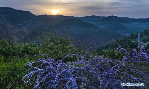 Flowers are seen at Mawan Village of Wuqi County in Yan'an City, northwest China's Shaanxi Province, June 7, 2019. Wuqi County has carried out a development policy since 1998 that returned farmland to forest for ecological protection and sustainable development purposes. (Photo: Xinhua)