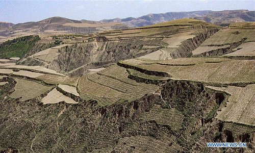 File photo taken in 1997 shows the farming condition before returning farmland to forest at Wuqi County in Yan'an City, northwest China's Shaanxi Province. Wuqi County has carried out a development policy since 1998 that returned farmland to forest for ecological protection and sustainable development purposes. (Photo: Xinhua)