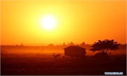 A man catches fish during sunset at Dal Lake in Srinagar city, the summer capital of Indian-controlled Kashmir, on June 9, 2019. (Photo: Xinhua)